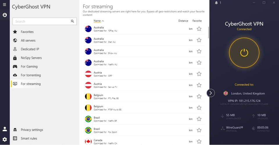 Visit your preferred content websites with your connection now appearing to originate from your selected region